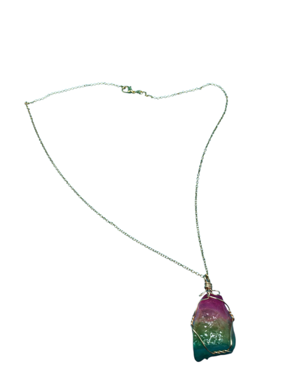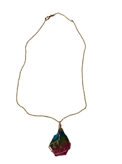 Beautiful handmade 18k gold plated necklace with large irregular shape stone