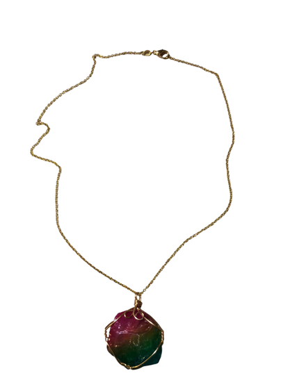 Beautiful 18k gold plated necklace with large irregular shape stone