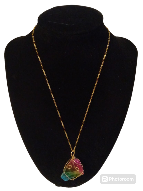 Beautiful handmade 18k gold plated necklace with large irregular shape stone